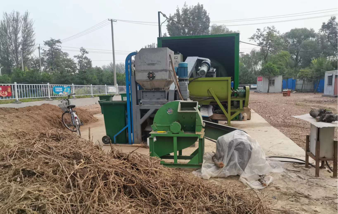 高丽营一村有机物全量化处理现场的农林废弃物。