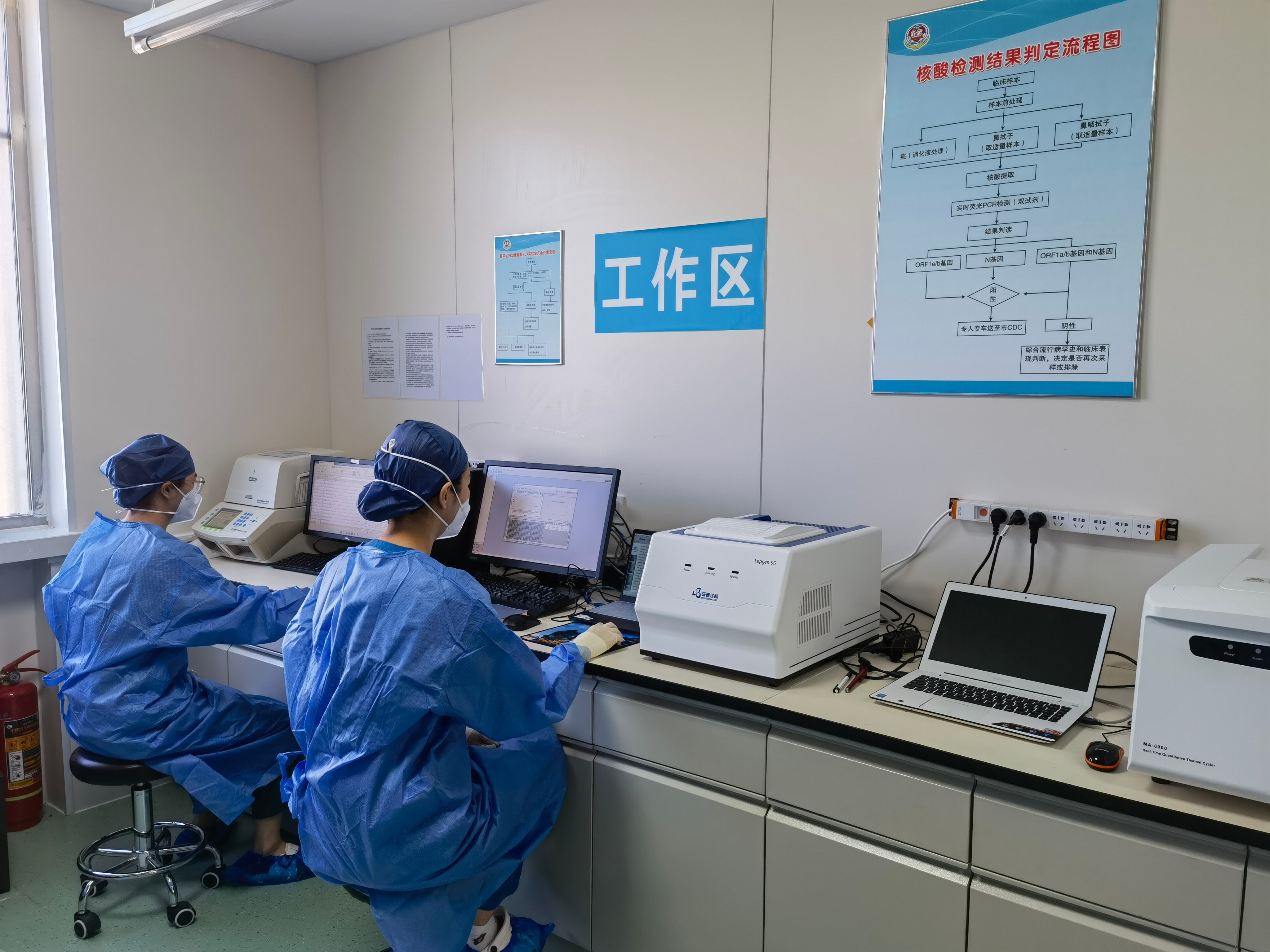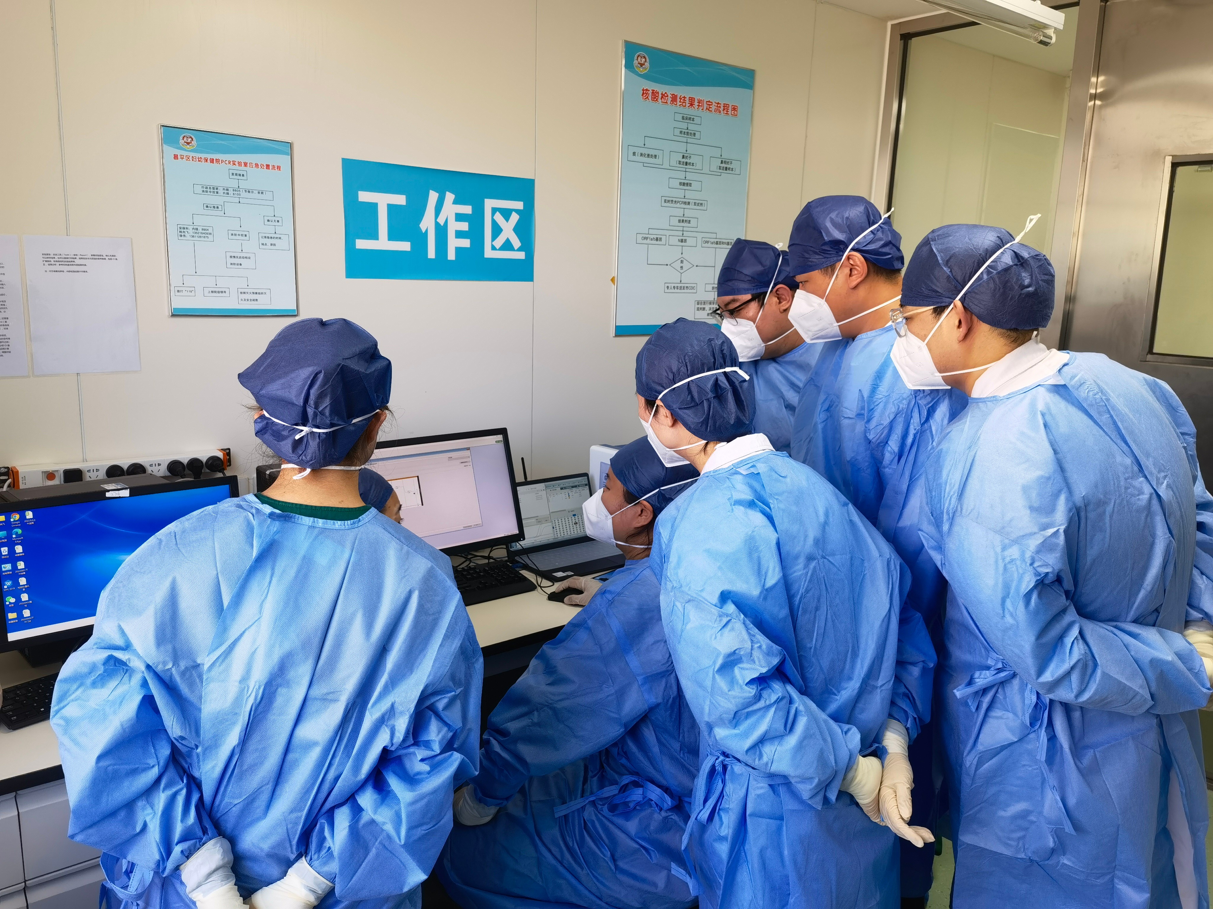 实验室配备专业操作人员6名,日常实行上午检测一次、下午检测一次,按照“两班倒”模式,每4至6小时轮换一次。“检验人员上岗前,统一进行岗前培训并取得相应资质,大家熟练掌握核酸检测流程及仪器操作方法,为核酸检测工作的开展提供有力的人员保障。”区妇幼保健院检验科主任韩向飞介绍道。