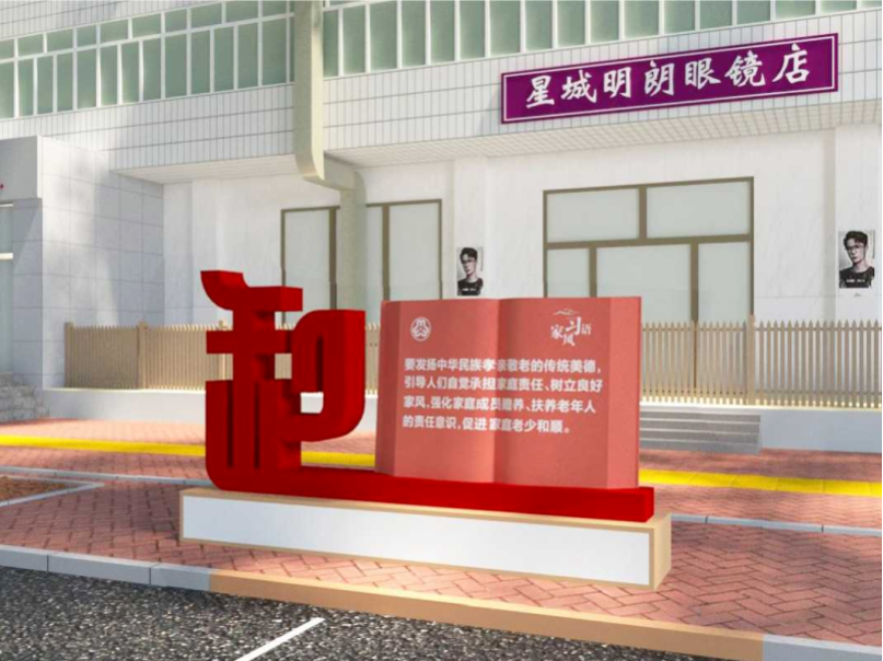 通过在灯箱上印刻名人名言及家训,以字和画的形式传承文化家风、家训,助力社区精神文明建设,提高和谐社区、和谐家庭幸福感,打造文化底蕴一条街。