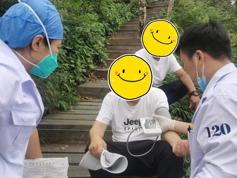 短暂休息后,陈先生在工作人员的搀扶下上了山,“当时工作人员从山上一路小跑着来找我,满头都是汗,一个半小时的路程他们仅用了四十分钟,后来他们又左边一个右边一个,搀扶着我,走了两个多小时,把我送到了山上,真是非常感激他们,及时救治我,要不是他们,后果真的不堪设想。”陈先生激动地说道。