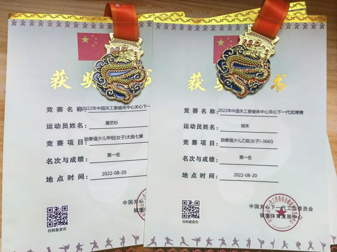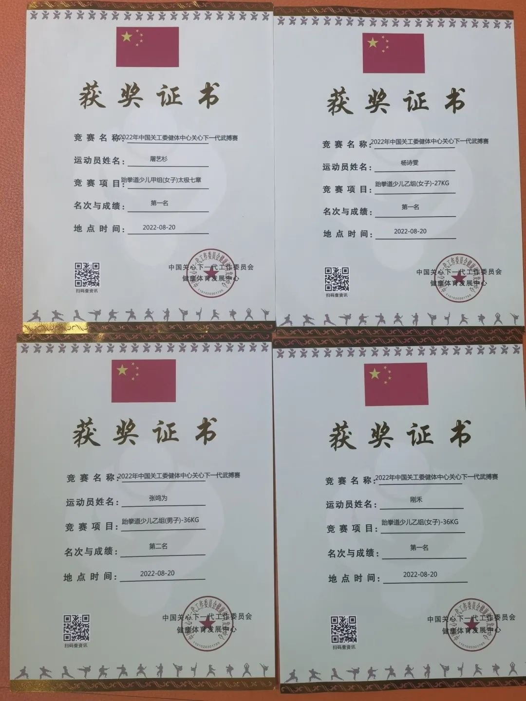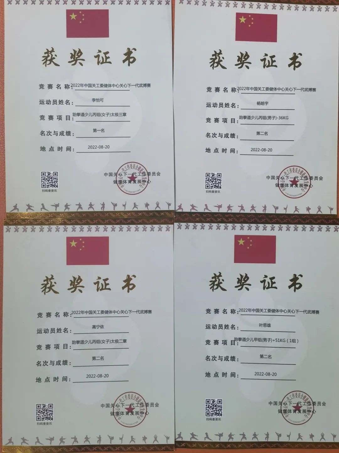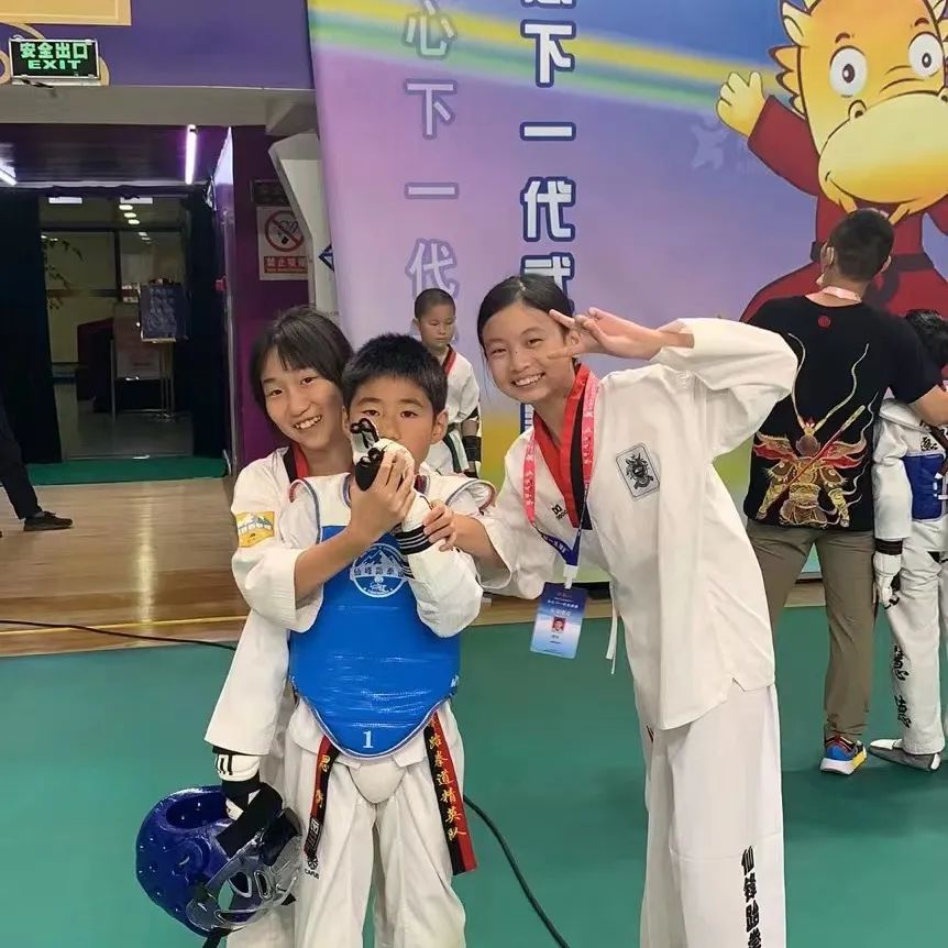 刚禾、李怡可、杨诗雯、靖宣庆、高宁依、杨皓宇6名同学是第一次参加全国性跆拳道比赛,并站上了最高领奖台。