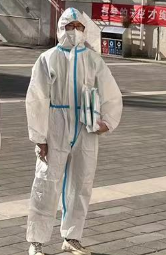 疫情防控工作千变万化,随时都可能会有突发状况。有一次一名学生被定为密接,需要指派老师把该生从学生宿舍转移至校内指定隔离点。这个时候他毫不犹豫地站了出来,穿戴好防护服,前往宿舍承担接送学生的工作。当时他并没有多想什么,只想着赶快把该生转移,保证其他同学的健康和安全。把学生安全送达隔离点后,脱下防护服的那一刻,他已经浑身湿透。