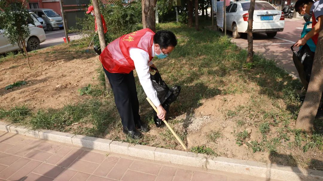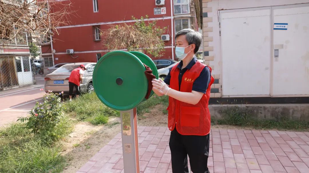 余卫国一行身着“密云先锋”红马甲,手持劳动工具,来到果园街道季庄小区,与党员、干部、志愿者一起,认真擦拭宣传栏、健身器材等公共设施,仔细找寻角落里、草丛中的纸屑和烟头等废弃物,并一一捡拾干净。