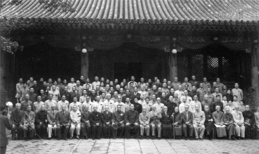 ▲图片说明:1949年9月17日,新政治协商会议筹备会第二次全体会议在北平召开。会议决定将“新政治协商会议”正式定名为“中国人民政治协商会议”,并通过了提交会议讨论的有关文件。图为毛泽东、朱德同出席会议的委员在中南海勤政殿合影。