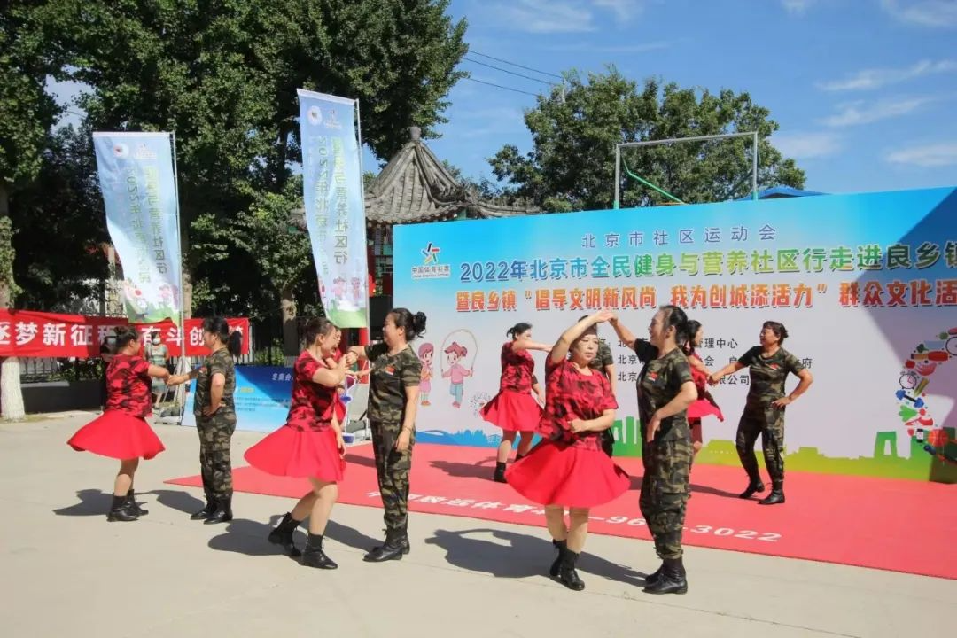 近日,北京市社区运动会2022年北京市全民健身与营养社区行走进良乡镇暨良乡镇“倡导文明新风尚 我为创城添活力”群众文化活动在良乡镇南刘庄村健身广场举行,来自镇内的200余名村民参与其中。