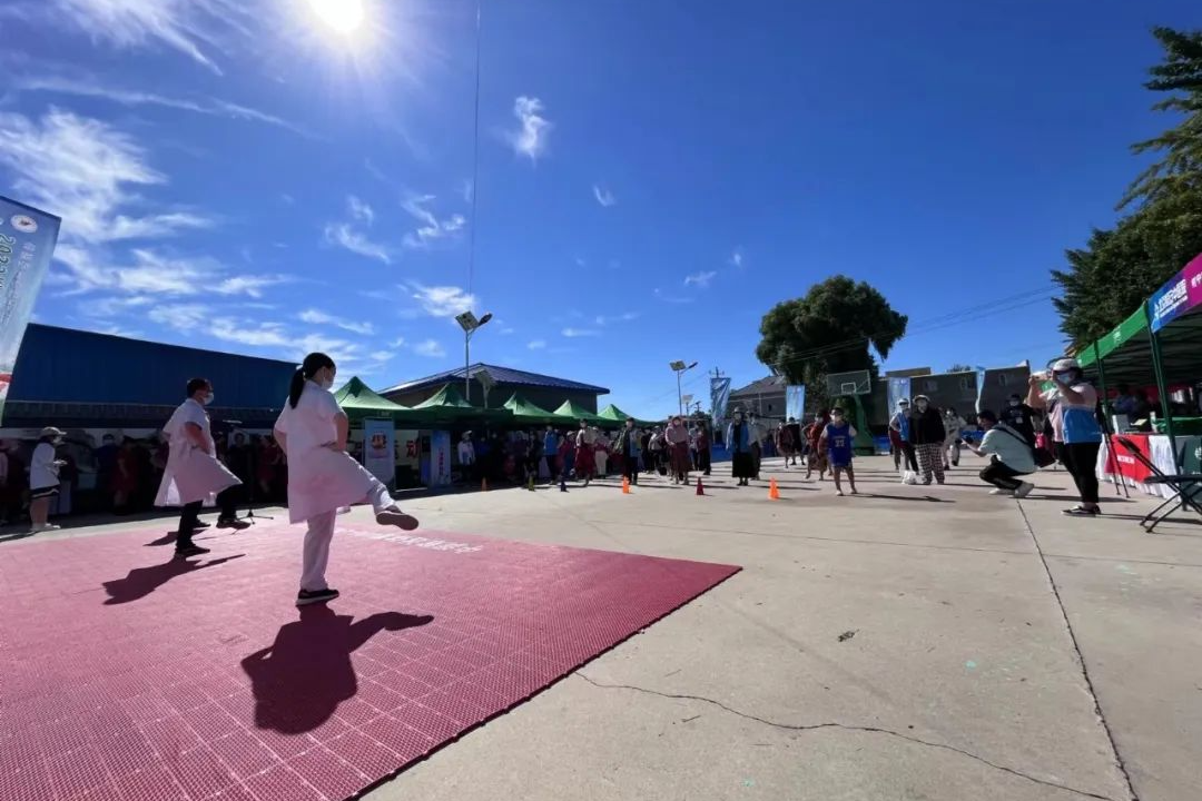 活动现场设置全民健身优秀节目展演、身体素质测试、科学健身与营养咨询、冰雪项目体验等互动环节。来自良乡镇各村的健身队伍带来了精彩的节目展演,充分展现了村民们积极阳光的精神风貌;恒安中医院的养生专家现场教学示范脊柱保健操,通过6分钟简便直观的锻炼学习,村民们很快就掌握了动作要领;营养专家为大家讲解日常肠道养生和科学均衡饮食健康知识。讲座结束后,展演队伍和群众现场进行身体素质项目测试,大家通过不同的体测项目了解自身肺活量、握力、平衡、反应等身体素质指标,从而更直观了解自己的身体状态,有利于日后有针对性的进行科学锻炼,通过营养知识的学习,调整适合自己的膳食习惯。