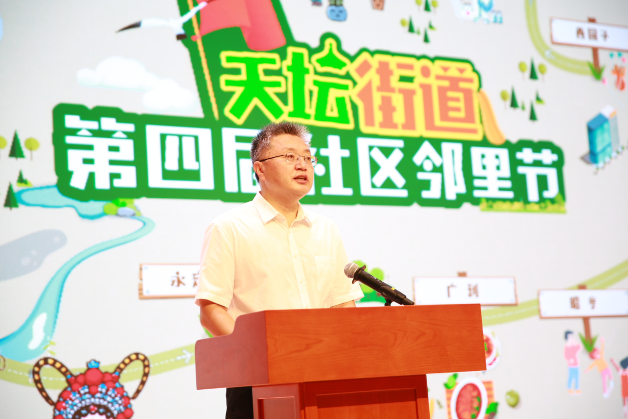 开幕仪式环节,天坛街道工委书记吴笛致开场词,介绍了天坛街道在社区治理创新方面取得的丰硕成果。