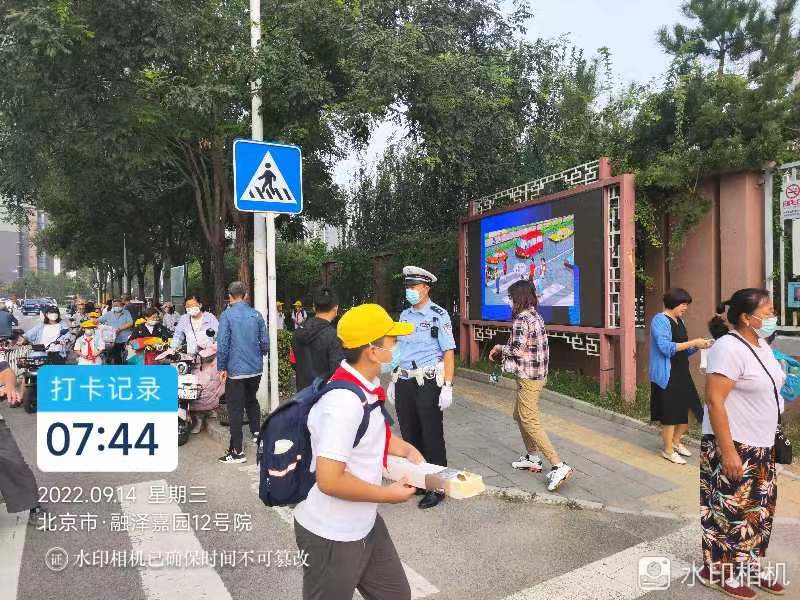 新学期来临之际,为全面提高辖区学生的交通安全意识,切实筑牢校园道路交通安全防线,9月14日,回龙观街道办事处驻镇民警带领辅警及交通安全工作部门联席会人员,来到育翔小学维护早高峰秩序,入校进行交通安全宣传。