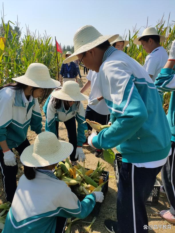 揭牌仪式结束后,32名师生代表来到基地玉米种植区进行玉米收获农事体验。同学们跑进田间地头,在工作人员的指导下,戴好草帽和手套开始劳动体验。学生们的劳动热情不断高涨,他们从劳动体验中感受到劳动的艰辛和价值,立志将传承新时代劳动精神,在劳动中获得创造美好生活的能力。