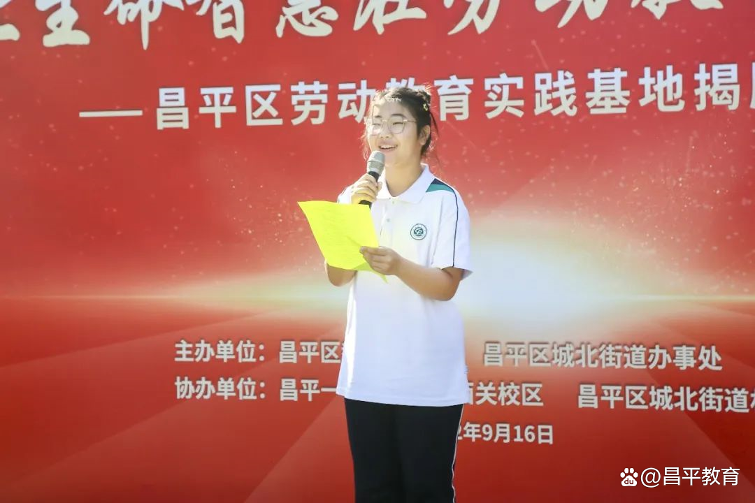 昌平一中教育集团西关校区学生田依禾作为学生代表,发言中不仅表达了新时代昌平学子对劳动教育重要性的深刻认识,而且代表全体学生表达了决心:将在四季交替、农耕劳作中,掌握劳动技能,体会劳动快乐,培养团结协作精神,启迪生命智慧,收获成长感悟!