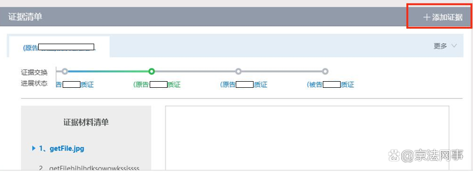 如该案件已经提交过证据,需要再次举证时,点击右上角“添加证据”,即可按照前述提交证据的方式提交新的证据材料。
