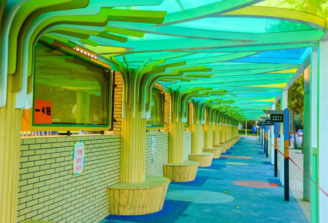 “我们对家长、教职工以及学生做了问卷调查,包括来访频率、停留时间、改造意愿、改造方向等方面在内。收集并整理了大家的意见之后,我们优化了方案,经过与学校、学生多次讨论,形成了最终方案。”黄超介绍道,此次改造摒弃“大拆大建”的思想,仅在原改造基础上进行优化升级,通过保留原改造铺设的软质地面和标识牌,保留目前学生排队的主导功能,结合公众需求,在顶部增加需求较大的遮阳避雨顶棚,并优化围墙设计,增加宣传互动功能,保证安全实用、便于管理的前提下进一步优化空间。