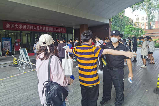 考试当日,共有474名监考老师、58名考务人员、191名安保、后勤和医护人员、37名考务学生助理直接参与当天的四六级考试服务工作。所有参与考试的监考和考务人员均按要求完成了新冠疫苗加强针的接种。保卫处在各考场楼入口预备充足检查通道,考前入场严格检查考生“二码一温”,合规有序维持考试秩序。后勤保障部提前对考场布置、考场消杀、防疫物资储备、考务人员用餐等工作做出详细安排,为考试的顺利开展提供充分的后勤保障。公共资源服务中心考前对所有考场多媒体设备进行了调试和更换,确保了听力考试顺利进行。领导小组对考试进行全过程的领导、监督与协调,各部门通力协作、密切配合,考试组织严密,考场秩序井然,考试圆满完成。