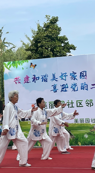 八里庄街道邻里节为居民搭建了展示自我的舞台,美丽园社区文艺团队柔力球、太极剑、太极拳等表演让现场气氛格外热烈。