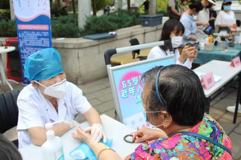 在清河街道活动现场,公益义诊、便民理发等活动受到了老年居民的热烈欢迎,不少居民在项目前有序排队参与活动。