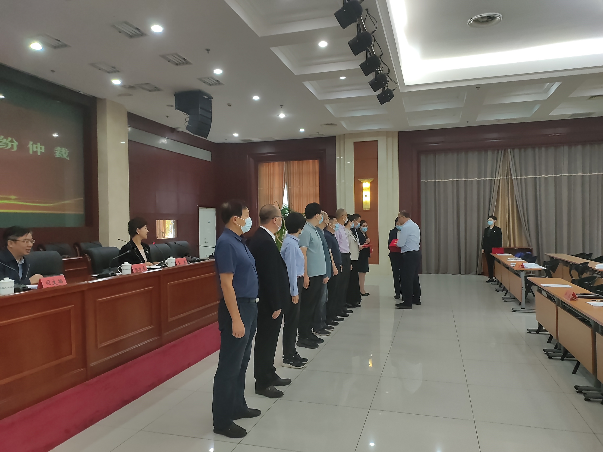 会议审议通过了大兴区农村土地承包纠纷仲裁委员会组成人员名单、仲裁员名单,选举产生了新一届农村土地承包纠纷仲裁委员会主任、副主任,对《大兴区农村土地承包纠纷仲裁委员会章程》进行了修订,并对20名仲裁员颁发了聘任证书,圆满完成换届选举各项工作任务。