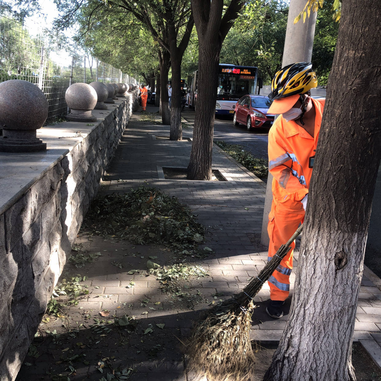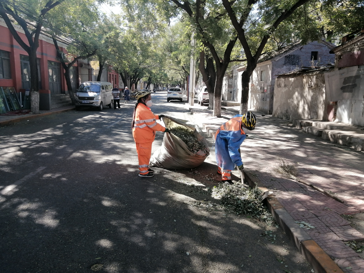 转变重点,科学作业。按照《大风扬尘天气环境卫生保障应急工作实施细则》的相关要求,转变工作重点,一线道路清扫保洁人员全员停休,后勤管理人员全部出动,加强责任范围内落叶清扫及白色污染捡拾工作,特别是加大北京西站、北京南站、北京丰台站、各大长途汽车站、小屯和云岗子站等重点地区及二、三、四环路、主要联络线、进出京道路和中心隔离带白色污染捡拾力度,确保环境卫生干净整洁。
