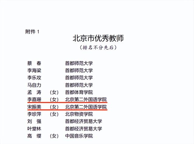 近日,为表彰先进、树立典型,进一步激发广大教师和教育工作者的积极性、创造性,奋力推动首都教育事业高质量发展,北京市教育委员会公布“北京市优秀教师”“北京市优秀教育工作者”表彰名单。北京第二外国语学院李嘉珊老师和宋振美老师荣获“北京市优秀教师”称号。