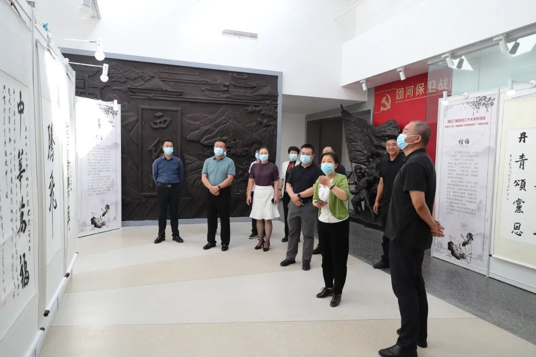 为弘扬中华民族传统文化,提高群众的书法、绘画艺术素养,喜迎党的二十大胜利召开,近日,西红门镇党委在党群活动中心举办系列特色活动——“翰墨飘香 尽抒爱国情怀”书画作品展。镇相关领导、村、社区工作人员及书画爱好者等共计50余人参加活动。