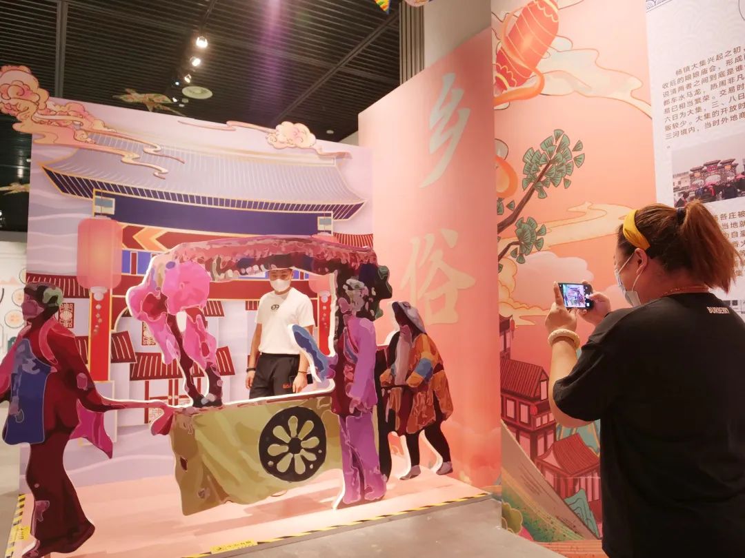 记者看到,现场还设置了四个互动体验区。在乡野展区,映入眼帘的是以潮白河多幅摄影作品组成的展示区域,其中添加河流、芦苇荡、候鸟等模型元素,吸引不少市民拍照打卡;在乡亲展区,设置以拼图为创意的顺义地图许愿墙,前来观展的市民可将自己的祝福张贴在该区域。此外,以乡村振兴为主题的文化墙、以小车会表演为主题的自拍背景也深受市民热捧。