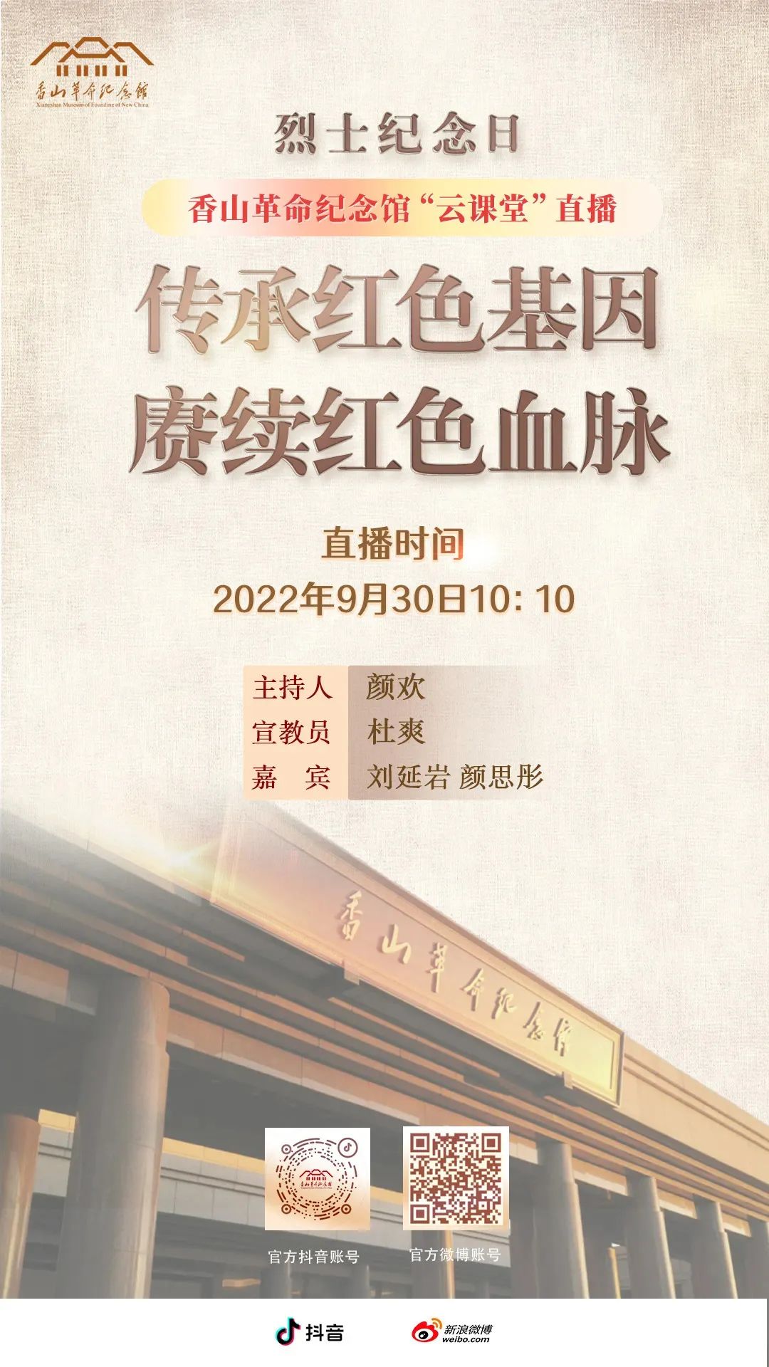 直播平台:纪念馆官网微博号、抖音号