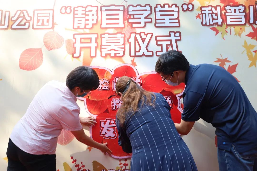 随着一幅由拼图组装而成“体验自然、探索科学、发现美”字样的呈现,香山公园“静宜学堂”科普小屋正式开幕。