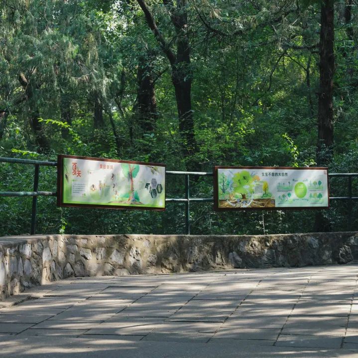 在通往科普小屋的主干道旁,以春、夏、秋、冬为主题,设置了四组科普牌示,带领大家走过四季,徜徉在自然科学的“时光小径”中。
