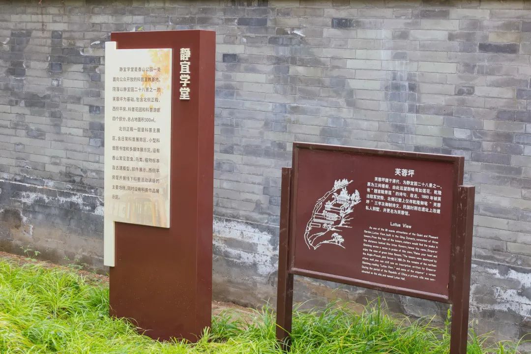 “静宜学堂”科普小屋坐落在公园芙蓉坪景区,这里曾为香山静宜园二十八景之一,因处于此处“远望群峰,宛似出水碧莲”而得名。随着科普小屋的开放,芙蓉坪景区也是经过近两年的修缮首次对外开放。