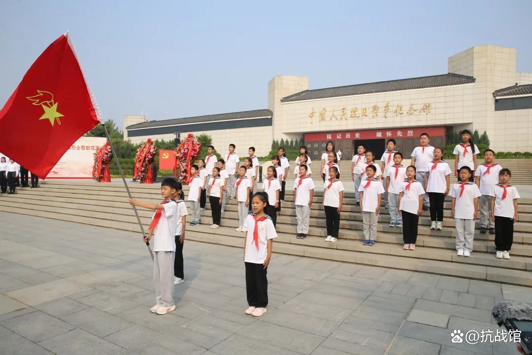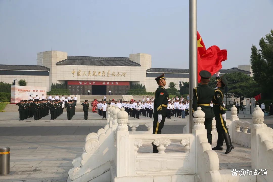 全场肃立,升中华人民共和国国旗,奏唱中华人民共和国国歌。雄壮的旋律将人们的记忆再一次带回到中华儿女同仇敌忾、共赴国难的烽火岁月,重温那段不屈不挠、英勇抗战的苦难辉煌历史。