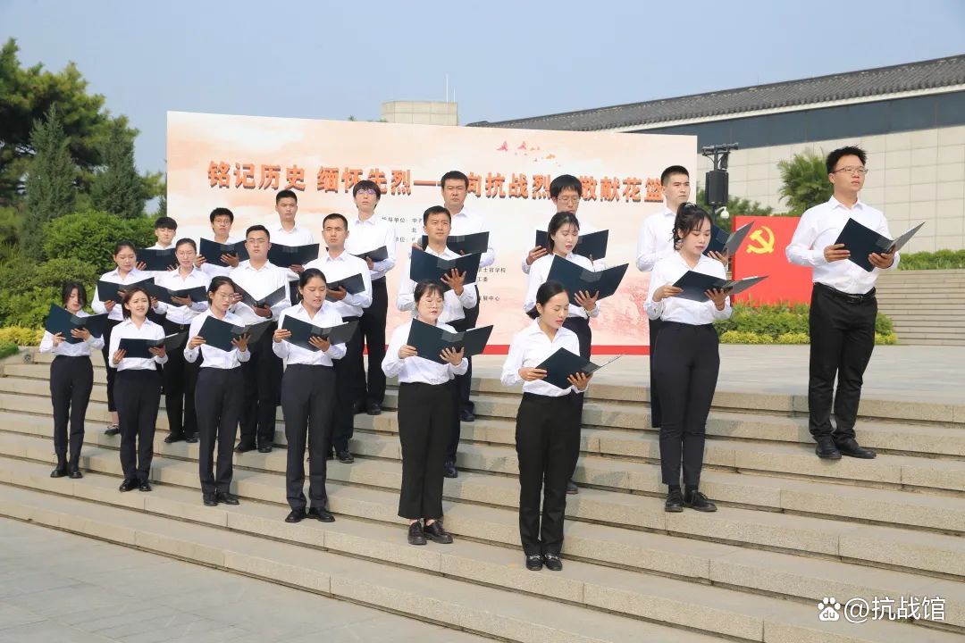 随后,青年代表朗诵抗战诗歌《为祖国而歌》,表达了年轻一代爱国情感、坚定信念和奋斗精神。