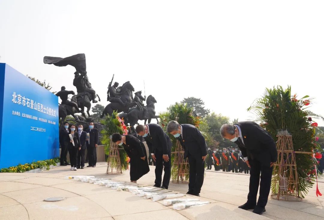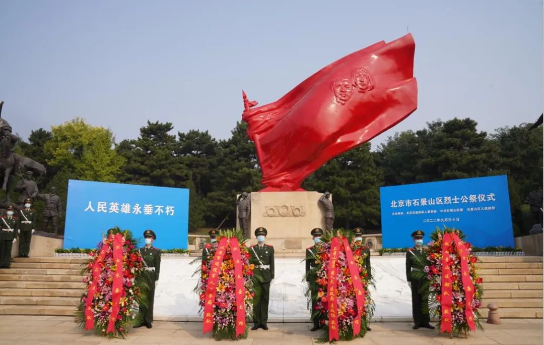 鲜花奠英雄,深情寄哀思,缅怀英雄先烈,致敬英烈精神,激发爱国情感,传承红色基因,通过公祭仪式活动,激励全区党员干部群众不忘初心,学党史、感党恩、听党话、跟党走,砥砺前行,以高昂的斗志迎接党的二十大召开,继承革命先辈们身上不灭的理想之光、信仰之光,学习百折不挠的奋斗精神,为石景山区打造新时代首都城市复兴新地标不断奋斗!为实现中华民族伟大复兴不断奋斗!