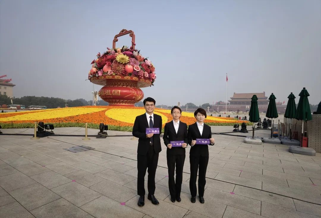 广场一侧是人民英雄纪念碑,镌刻着由毛主席起草,周总理亲笔手书的碑文,提醒着我们不要忘记曾经的深重苦难,不要忘记“乱世浮萍,烽火燃山河”的革命年代一辈辈为理想、为独立、为解放而奔走、奋斗、坚守的革命先辈,不要忘记一寸山河一寸血,一抔热土一抔魂。广场另一侧是印刻着“祝福祖国”的锦绣花坛,我们跟随新时代的脚步,感受中国日新月异的变化,我们相信当下的中国比历史上任何时期都更接近、更有信心和能力实现中华民族伟大复兴的目标。