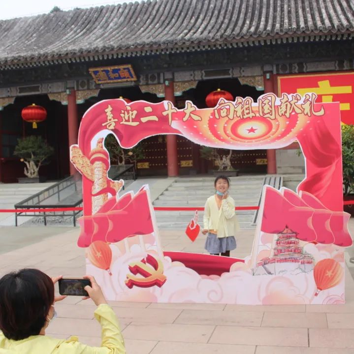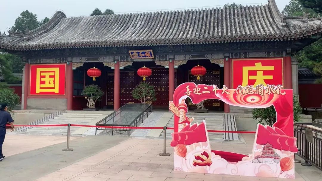 今天是中华人民共和国73华诞,颐和园党委在东宫门广场摆放了“喜迎二十大 向祖国献礼”主题拍照背景板,寓意与颐和园一起共迎党的二十大胜利召开,开创更加美好的未来。