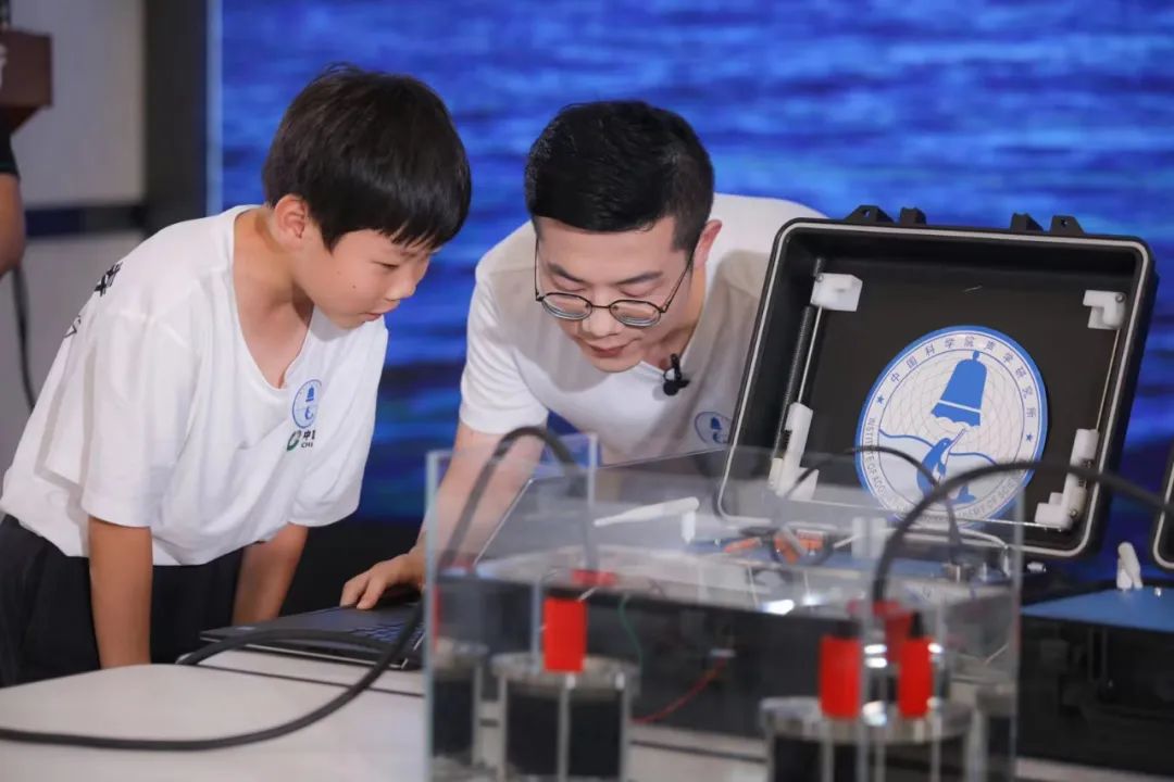 节目中,科学相关内容的传播手段也更为多样,几乎每场科学探访中科学家都会与年轻学生共同完成实验,让学生成为探究的主体,充分满足孩子们的好奇心和求知欲,创设情境也更利于对科学原理的接受。在声学所,研究员们现场进行水声通信实验,模拟“奋斗者”号与母船通讯,张志博研究员带领孩子们一起做的“能看得见的声音”实验直观又有趣,让孩子更能理解神奇现象和科技创新成果;在化学所,宋延林主任和专家在实验室实地讲解“跳芭蕾的水滴”实验原理;在大气物理研究所,朱江研究员带领大家走进地球系统数值类比装置“寰”,解读“寰”如何预测未来气候变化。