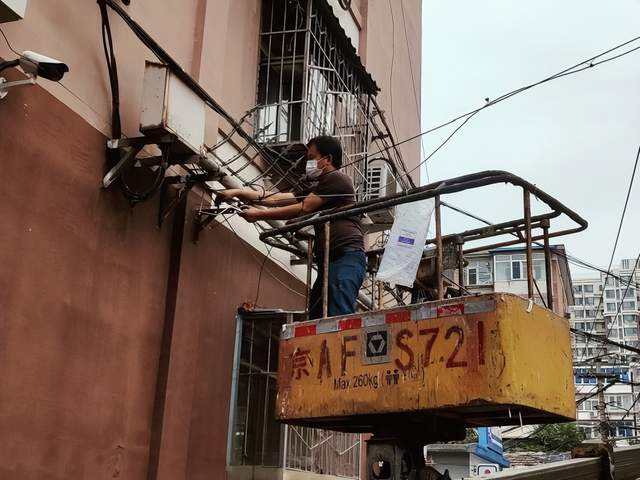 社区党委联合物业公司等单位整理社区挂空线缆,