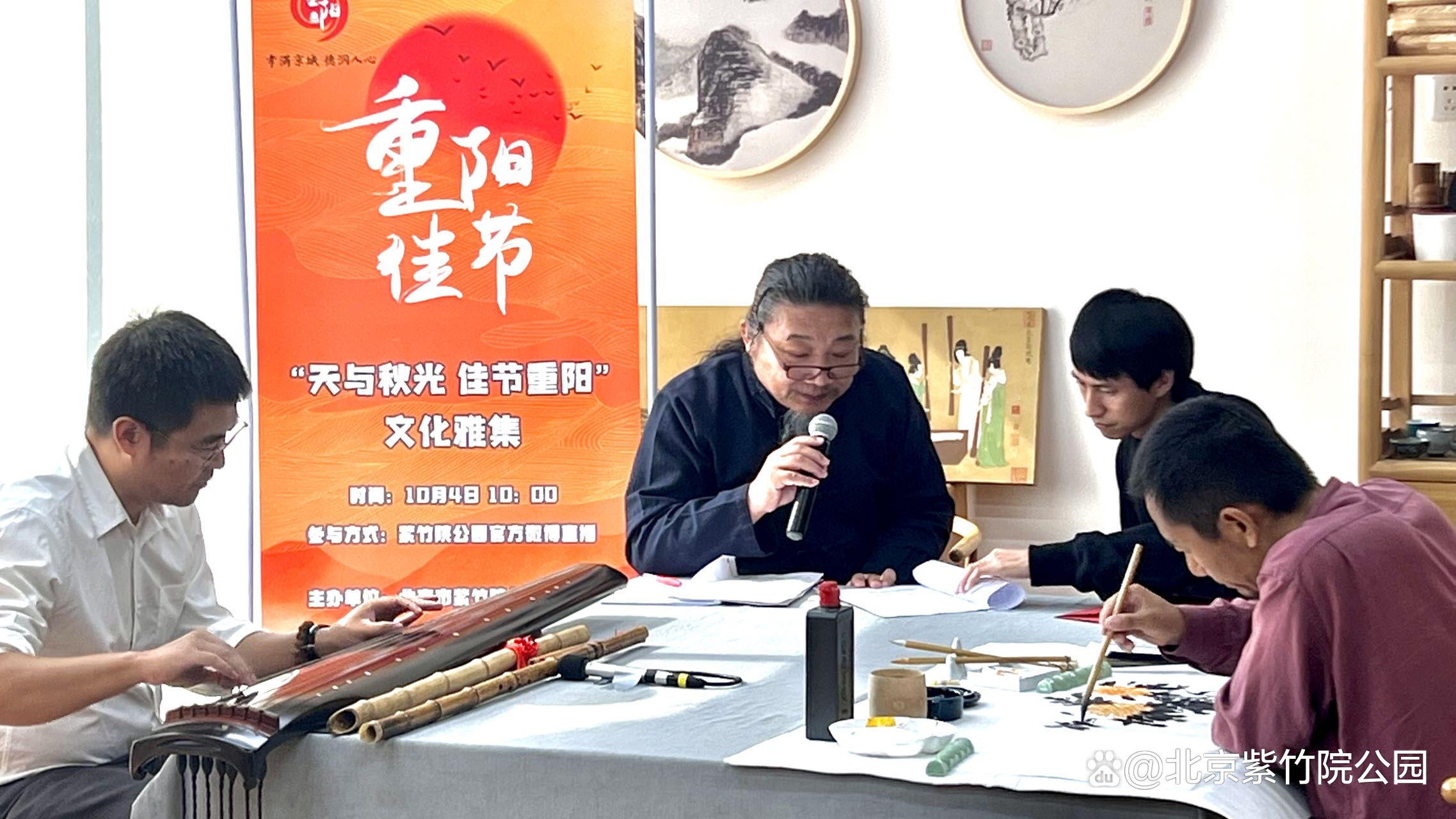 天与秋光,佳节重阳。正值重阳佳节,紫竹院公园联合国家图书馆邀请到民俗、诗词、音乐、书法等方向的四位老师, 以重阳节为主题,通过线上直播的形式与市民游客一起共赏文化雅集,赏菊品糕、遍插茱萸、赋诗赏乐、书画为伴,感受重阳节时光内涵。