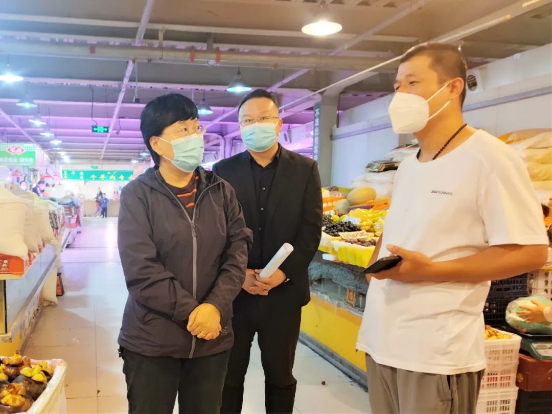 宏德利远市场和兴海便民服务站分别是亦庄镇和瀛海镇主要的农贸市场。节日期间,丰富的瓜果蔬菜肉类等整齐摆放在摊位上供居民挑选。“国庆期间菜价有什么变化?”“每天客流高峰是什么时候?”“工作人员都去哪儿进行核酸检测?”“消杀是怎么安排的?”杨秀玲一边察看市场供应情况,一边详细了解市场防疫工作落实情况。她强调,大多数职工居民响应号召,选择在北京就地过节,更需要我们把疫情防控摆在突出的位置,严格贯彻落实市委市政府关于疫情防控总体部署,把各项防控措施落实到位。农贸市场、便民菜站是防疫的重点场所,市场管理者要严格守住关卡,落实扫码、测温、查验核酸阴性证明等措施,把风险防控做在前面;要做好台账梳理和人员底数排查,从业人员要按规定定期做好核酸检测,通过加强市场自检自查能力,有效降低风险;要根据市场人员多的特点做好防疫措施的创新,提倡“一摊一码”,通过科学化手段全力保障防疫安全。