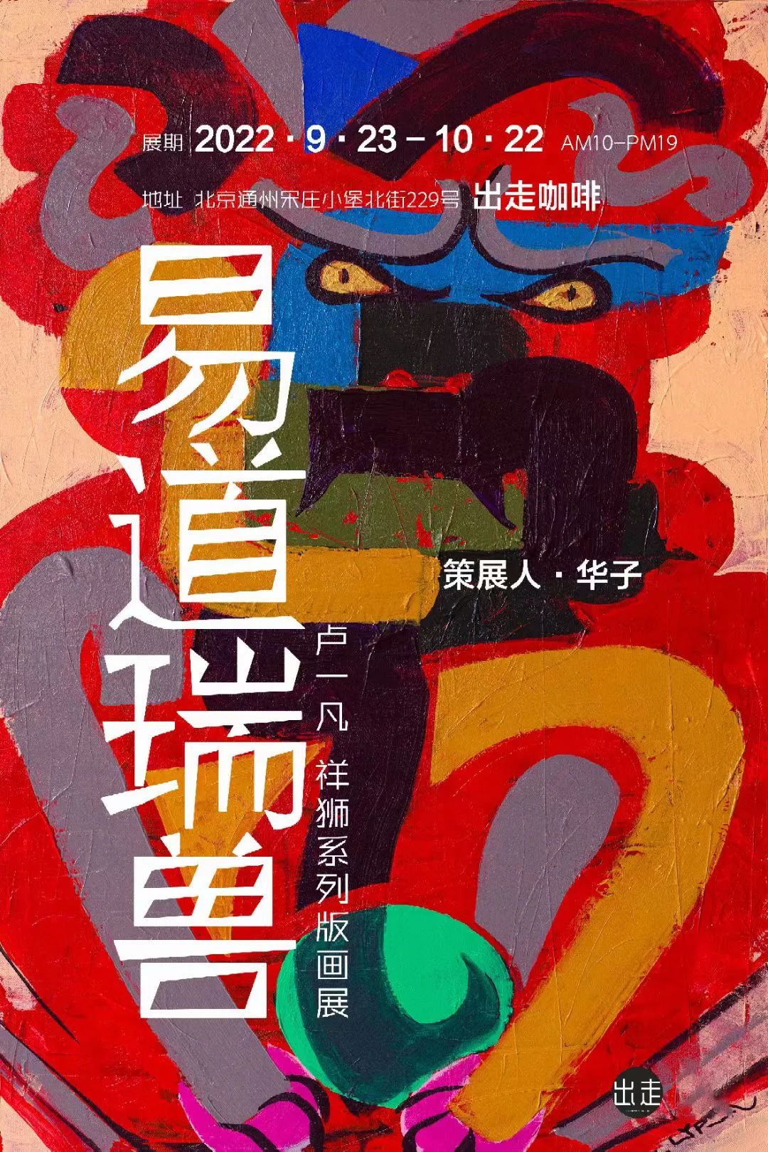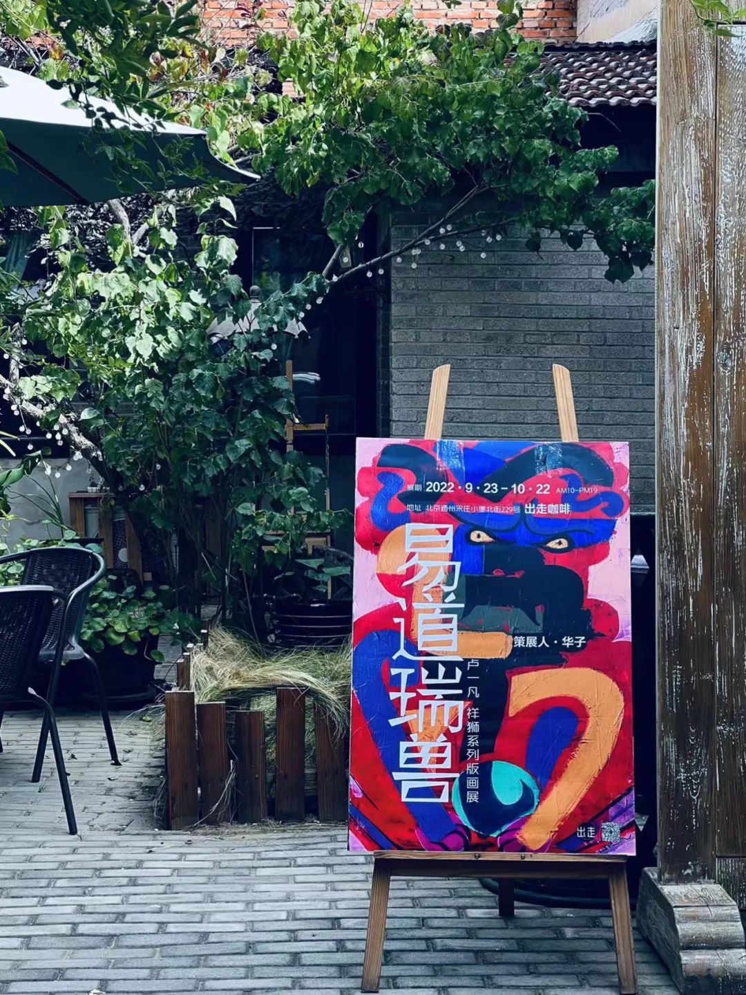 出走咖啡是宋庄的“老字号”咖啡馆,坐落在小堡南街。非常有情调的一间艺术小院。本次展览的是卢一凡祥狮系列版画展《易道瑞兽》。