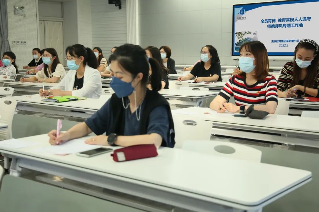 新学期伊始,学校召开主题为“全员育德 教育常规人人遵守”全体教师工作会,老师们签署《史家教育集团革新里小学教师师德承诺》:立德树人,让史家革小的每一颗“小种子”都能够:身心舒展、热情丰盈、好奇向上、善于合作、自主灵动,成为具有家国情怀底蕴的和谐的人。