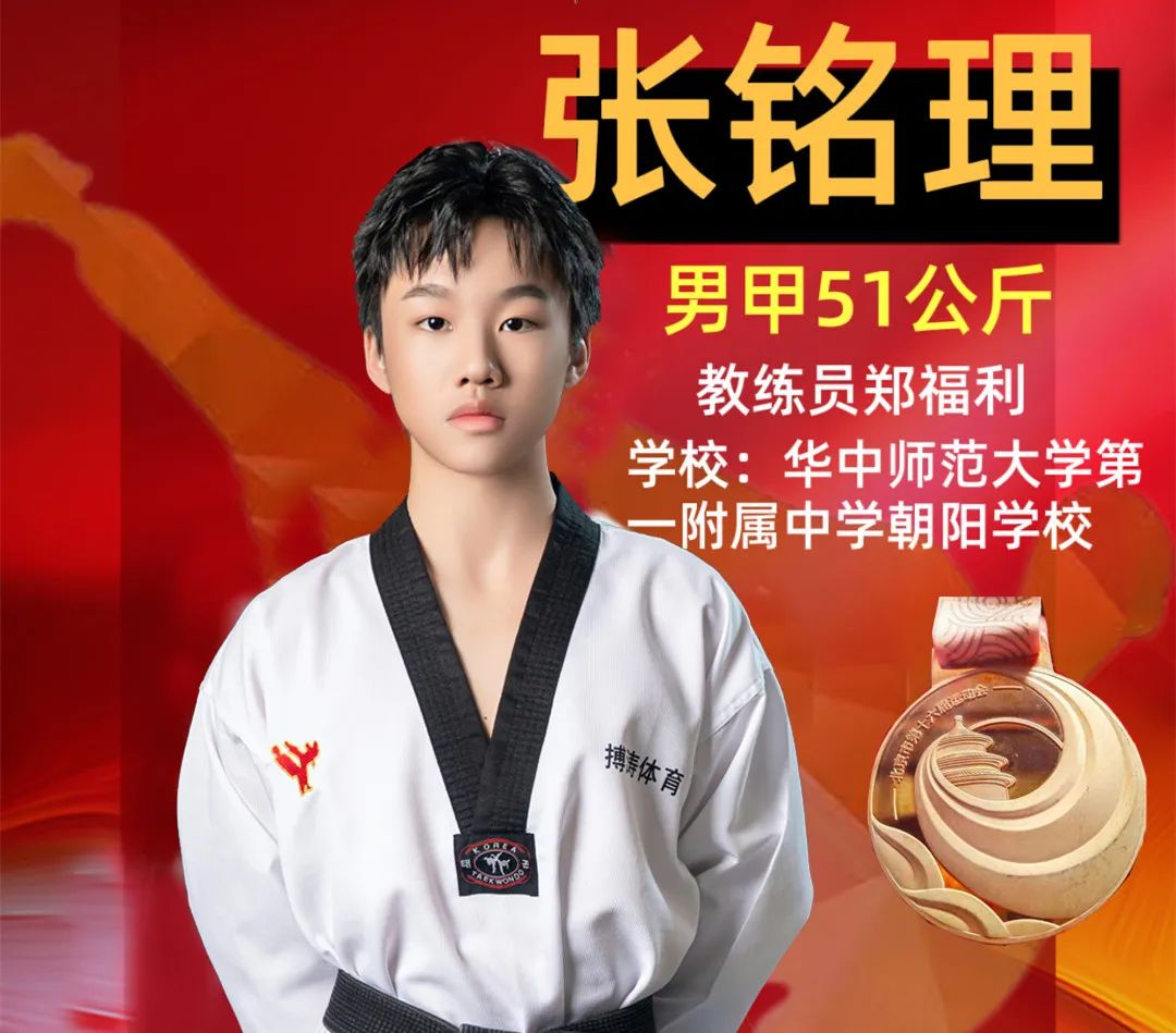 在本届青少年组男子51公斤级跆拳道决赛中,面对对手的猛攻,张铭理有条不紊、沉着应对,既不因对方的强势而畏缩,也不因自己领先比分而沾沾自喜、急于求胜,始终在进可攻退可守之中游刃有余地把一招一式发挥得淋漓尽致。“精湛的技术+过硬的心理素质”最终使张铭理成为众望所归的金牌得主。