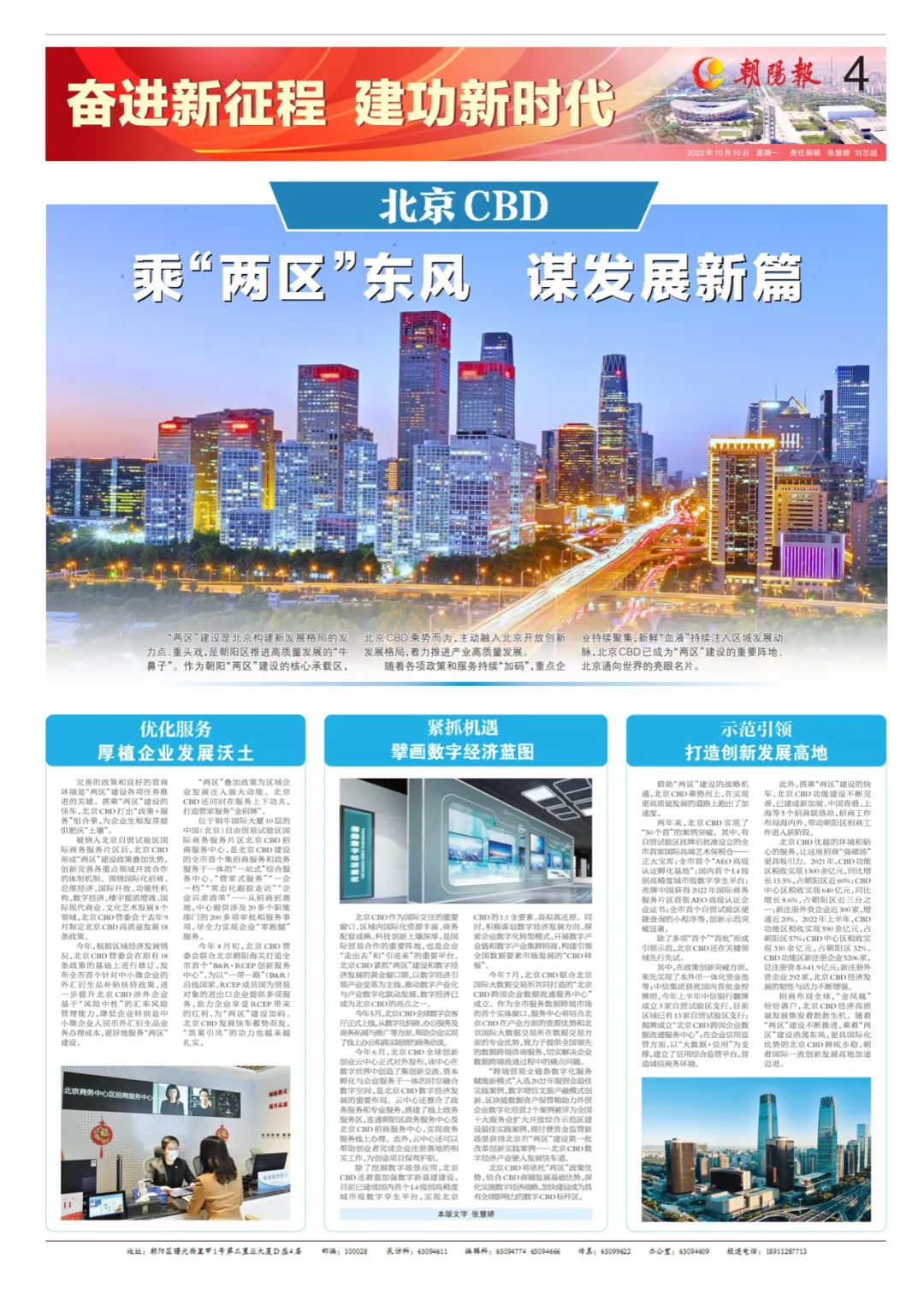 “两区”建设是北京构建新发展格局的发力点、重头戏,是朝阳区推进高质量发展的“牛鼻子”。作为朝阳“两区”建设的核心承载区,北京CBD乘势而为,主动融入北京开放创新发展格局,着力推进产业高质量发展。