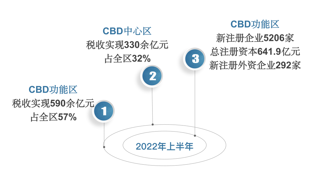 2022年上半年,CBD功能区税收实现590余亿元,占朝阳区57%;CBD中心区税收实现330余亿元,占朝阳区32%。CBD功能区新注册企业5206家,总注册资本641.9亿元;新注册外资企业292家,北京CBD经济发展的韧性与活力不断增强。