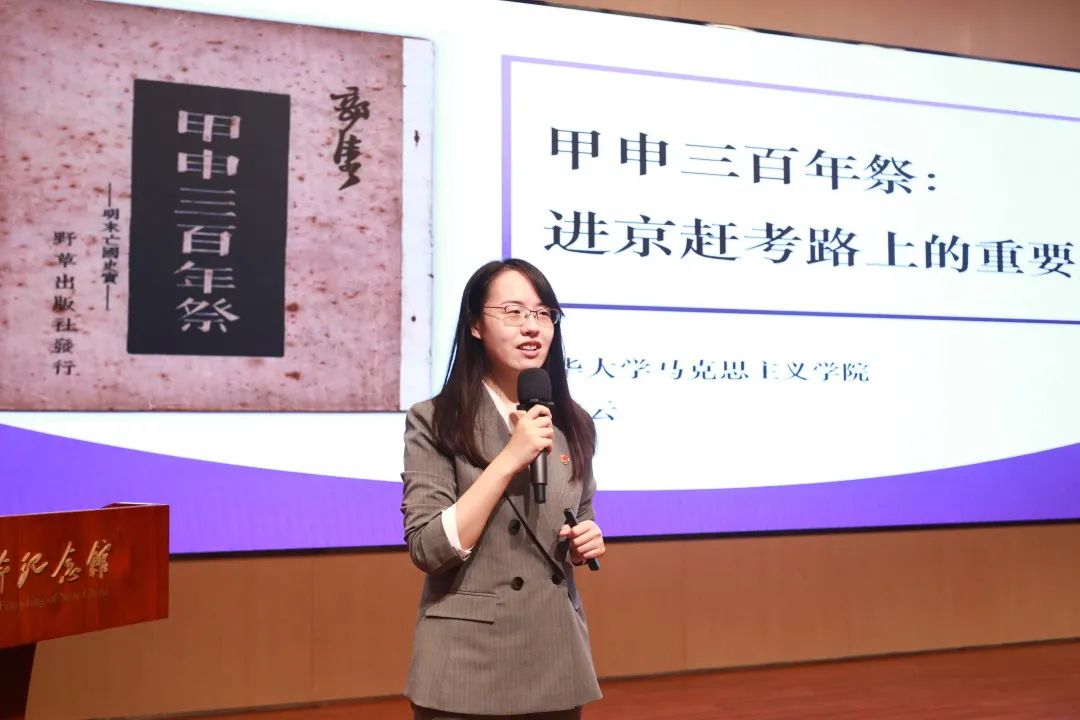参观结束后,在香山革命纪念馆报告厅,马克思主义学院院长助理张牧云讲授了微党课《甲申三百年祭:进京赶考路上的重要文献》。讲座首先回顾了《甲申三百年祭》的写作背景和基本含义,分析了中国共产党为何重视《甲申三百年祭》,并在互动环节集体讨论了如何跳出治乱兴衰的历史周期规律。通过微党课的学习,同学们更好地理解了香山革命精神与进京赶考的内涵。