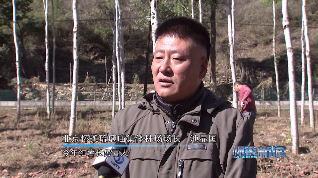 北京怀柔琉璃庙集体林场场长池显国说:“今年这个红薯长势喜人,应该达到两万多斤吧。又解决周边村庄的劳动力就业,明年准备在这地块种植点花生,属于林下经济,发展低秧,能增收。”