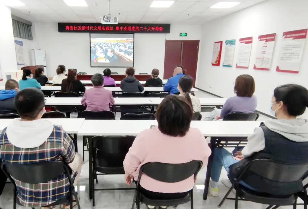 梅香社区新时代文明实践站志愿者集中收看党的二十大开幕会盛况。