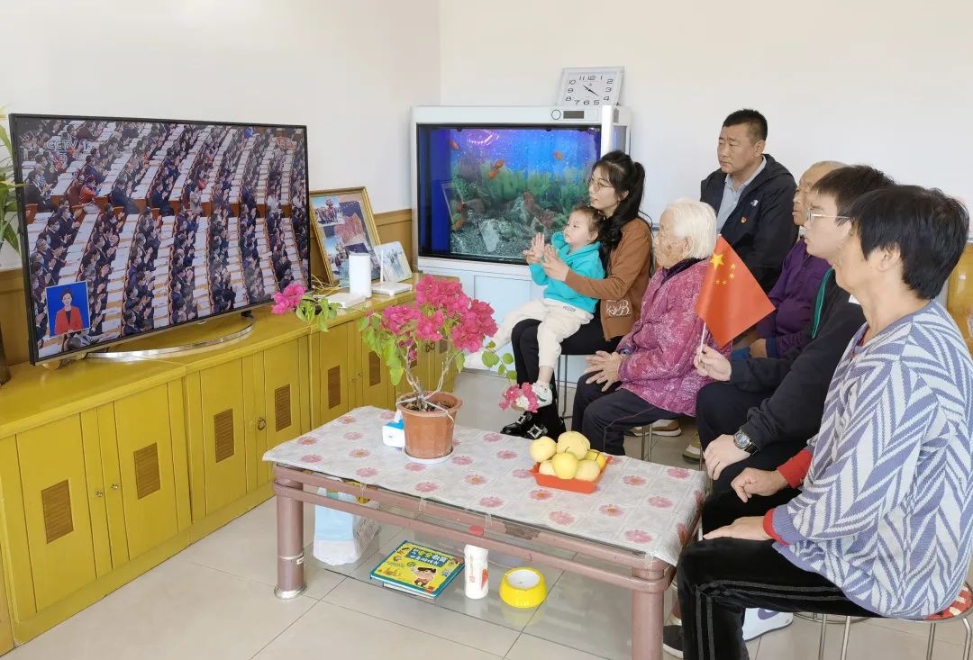 陈月香一家四代同堂共同收看党的二十大开幕会。
