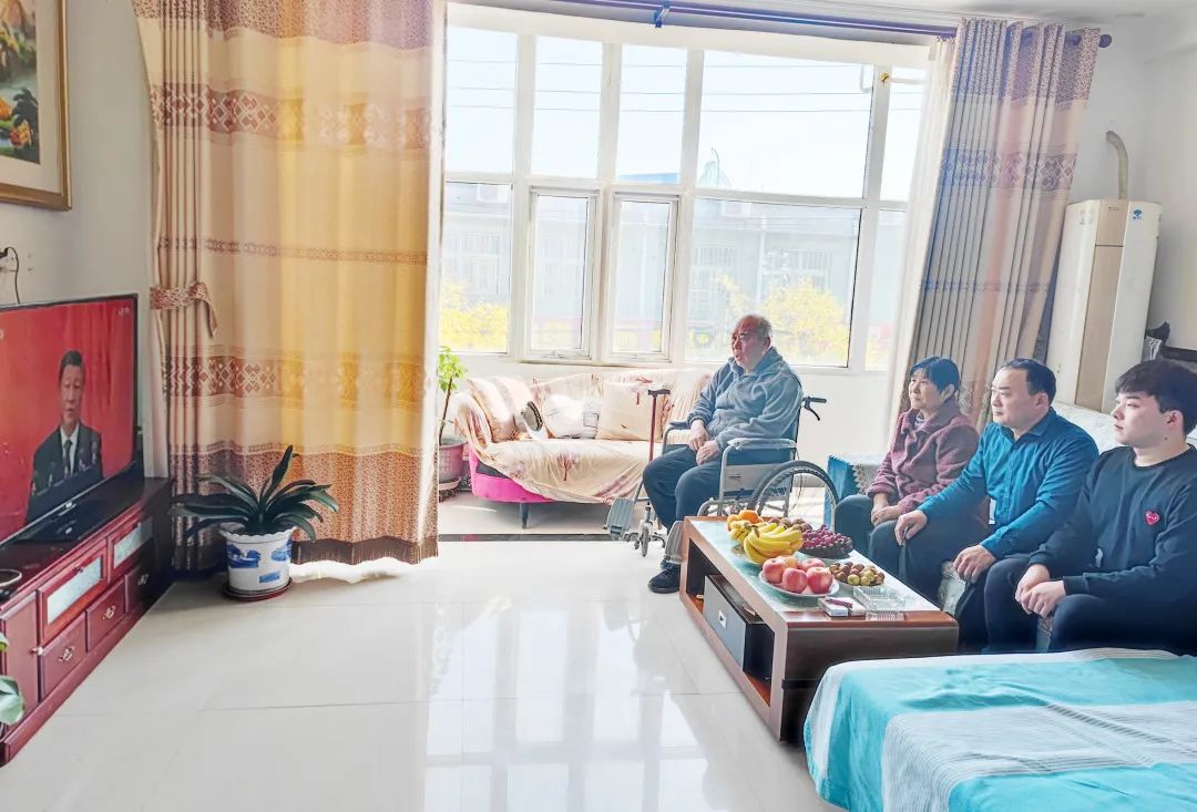 “首都最美家庭”桑宝印一家收看党的二十大开幕会。