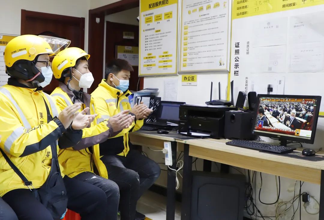 在美团外卖马坡站,部分外卖小哥们守候在电脑旁,收看党的二十大开幕会现场直播。长期奔波在社区、办公楼宇之间的美团外卖员张志亮,深有感触地说:“近年来,老百姓的生产生活环境有了很大改善。有了党的好政策,我们这些新就业形态的从业者才拥有了更好的社会保障,并得到了社会各界的关注与关怀。”观看直播过程中,大家认真聆听报告,情不自禁地为习近平总书记的精彩报告鼓掌。“今天观看党的二十大开幕会后,我备受鼓舞。作为新就业形态行业的基层青年,我将努力提升服务水平,做美好生活的创造者、守护者。”美团外卖马坡站站长吴迪说。