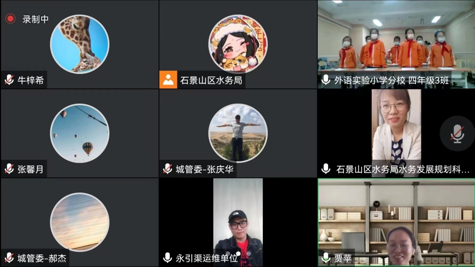 14:30,课堂正式开始,石景山外语实验小学分校3名老师及四年级3班7名同学、家长代表参加了这次课程,区城市管理委水务发展规划科、永引渠应急运维单位与他们互动交流。