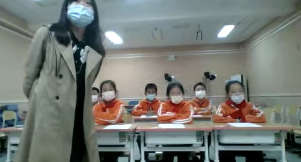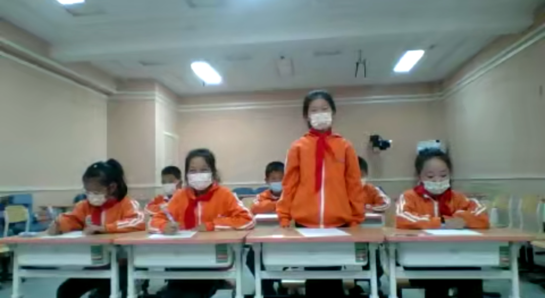 ▲石景山外语实验小学分校老师引导课堂现场秩序